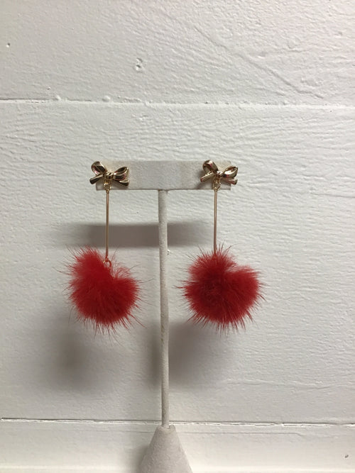 Red puff earrings with bow