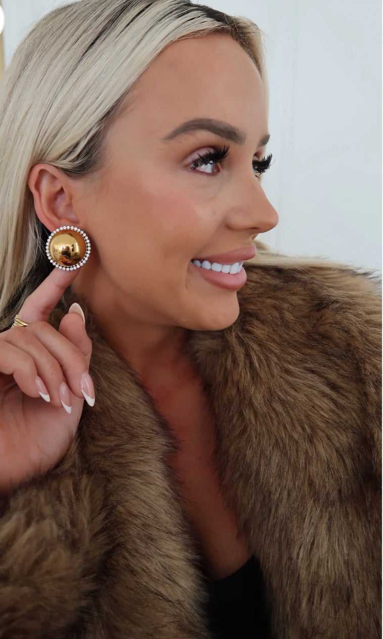 Beautiful pair of gold-plated stainless steel round dome stud earrings with a halo of CZ.