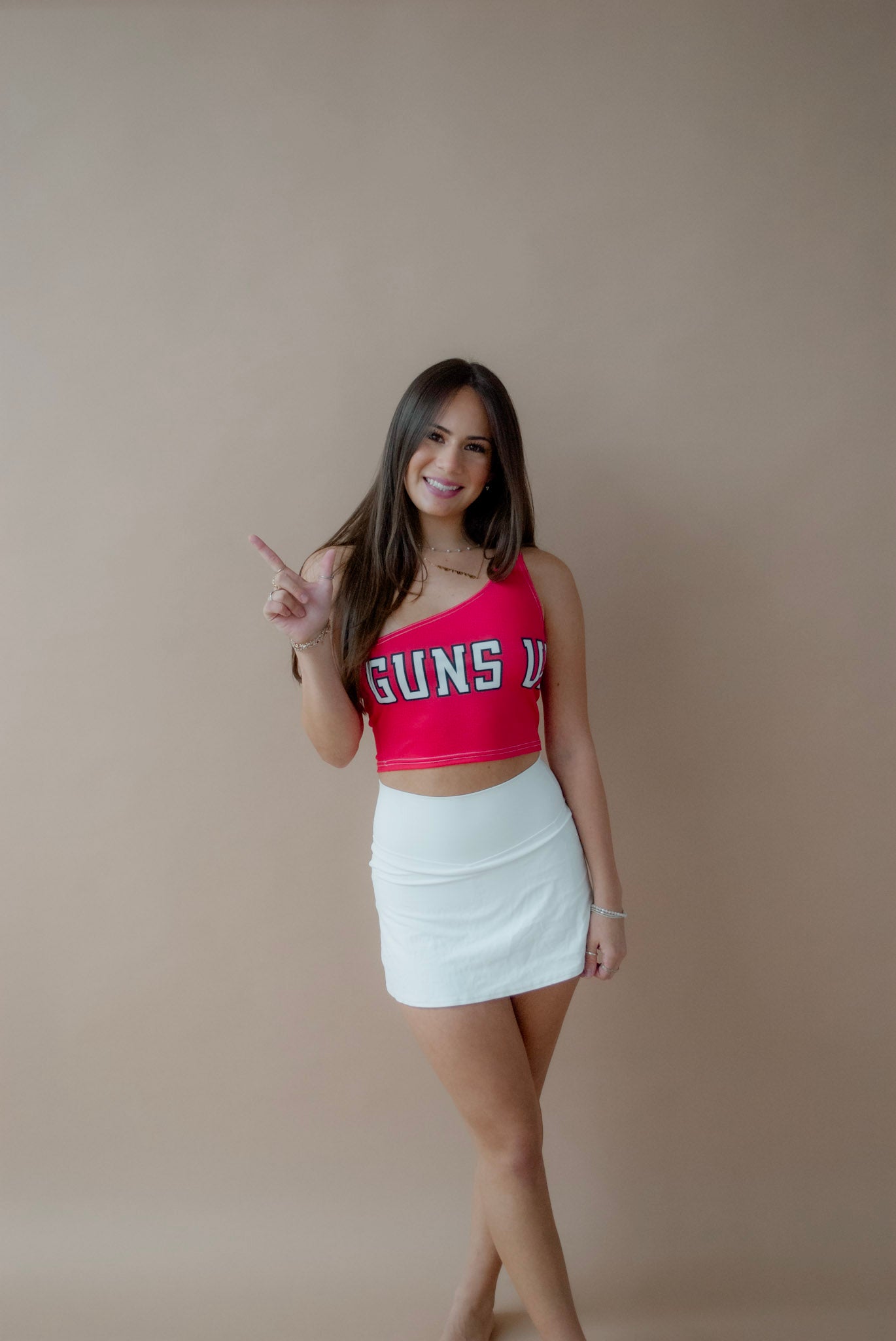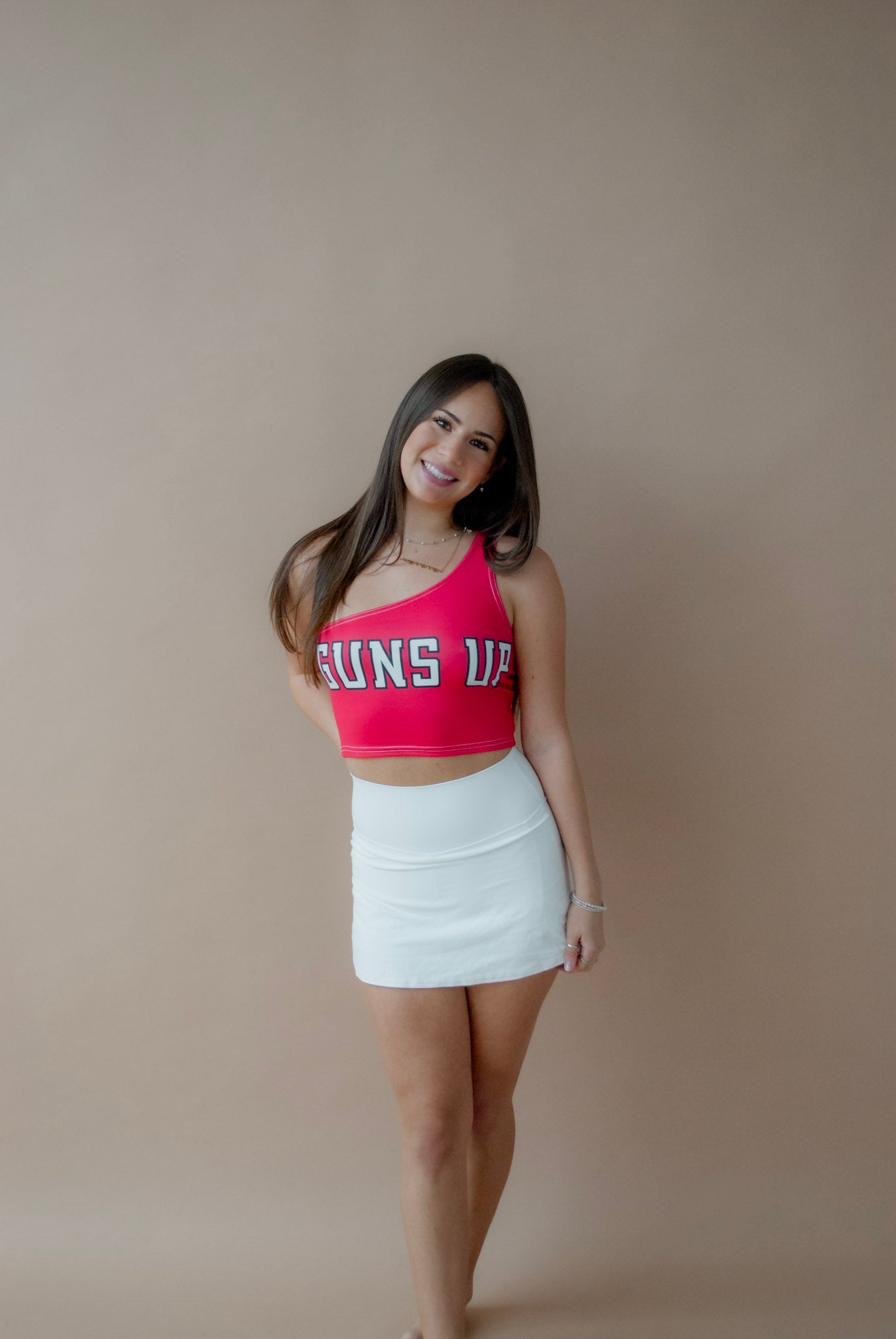 This super flattering Texas Tech Guns Up Red One Shoulder Top is perfect for college game day! Our Texas Tech One Shoulder Top's stretchy fabric makes it the perfect option for all body types.